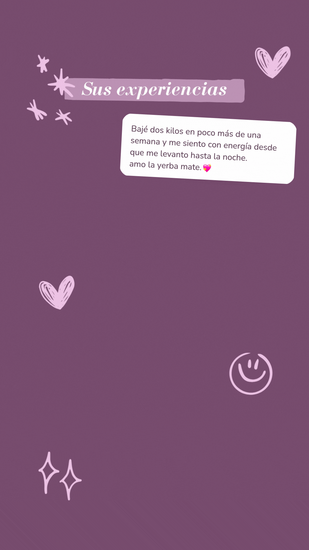 Decile adiós al cansancio y al metabolismo lento. Yerba Mate te da una energía limpia y constante mientras activa tu cuerpo para quemar más grasa sin esfuerzo. Su fórmula natural combina el poder de la yerba mate con extractos termogénicos que aceleran el metabolismo, reducen el apetito y aumentan la concentración mental. Ya sea que estés trabajando, entrenando o simplemente queriendo mantenerte liviana y activa todo el día, Yerba Mate te acompaña con una sensación real de bienestar. Sabor natural, efecto rápido y resultados visibles desde la primera semana.